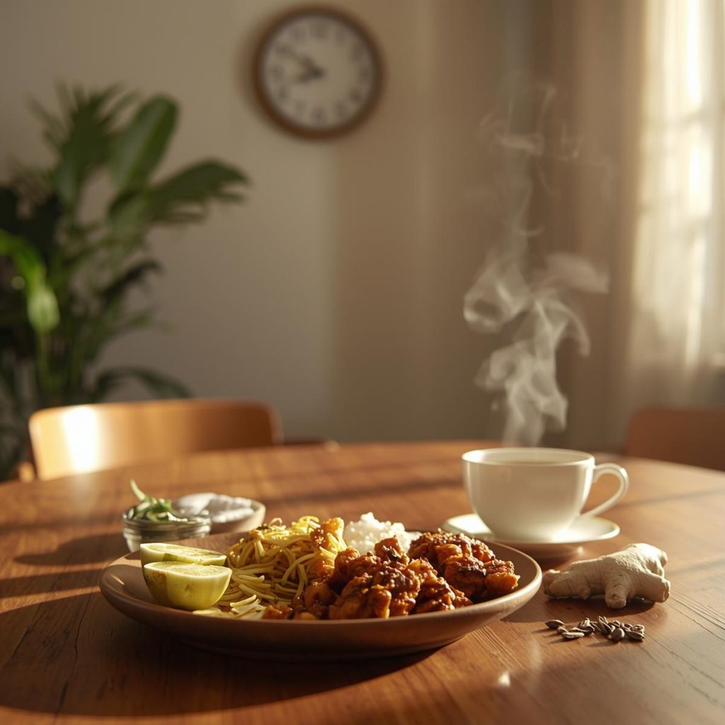 Guidance on when and how to eat according to Ayurvedic rhythms to improve digestion, nutrient absorption, and metabolic balance.